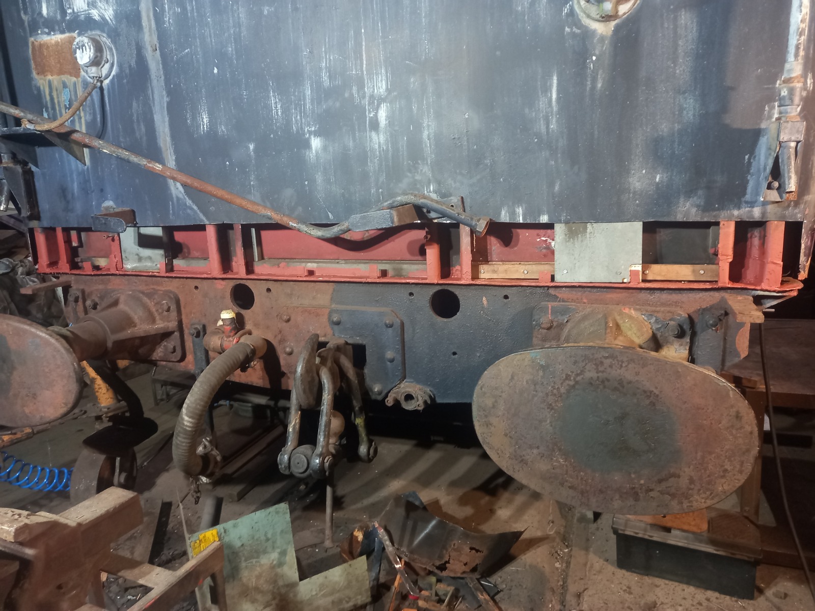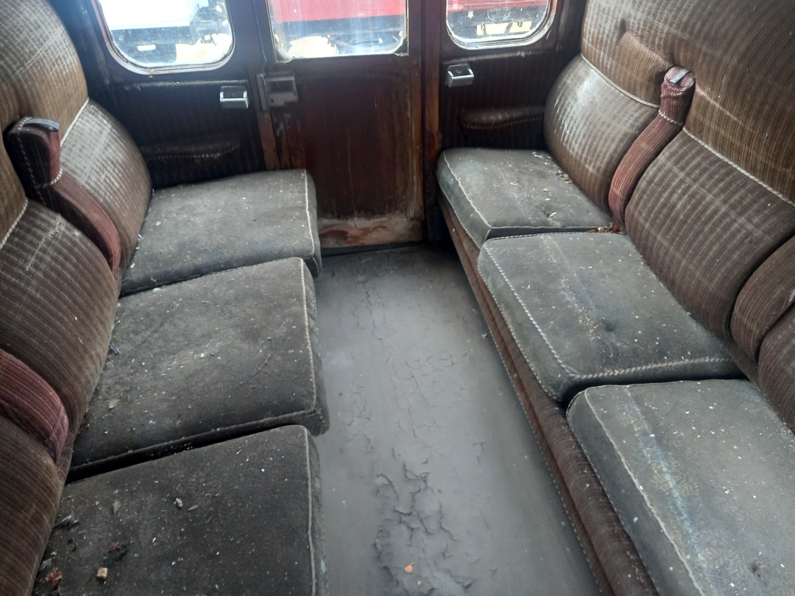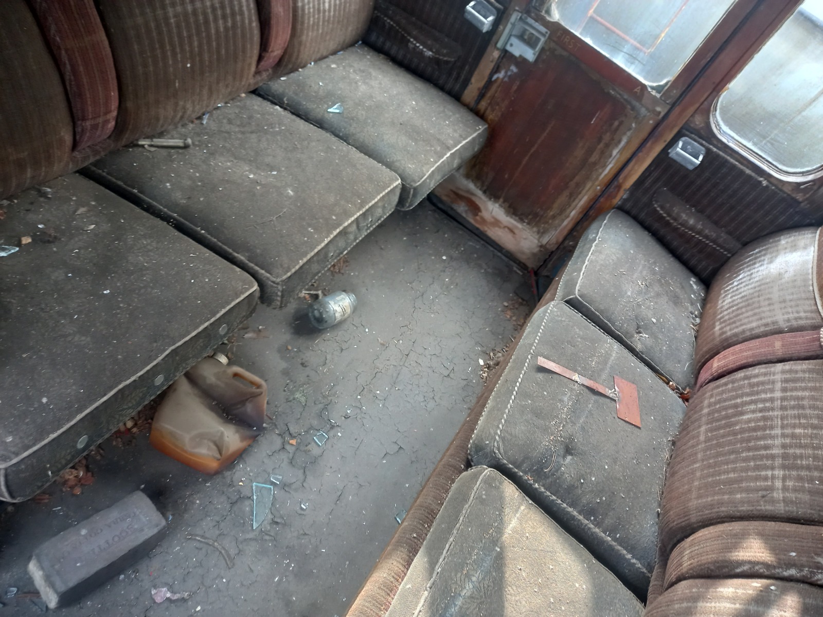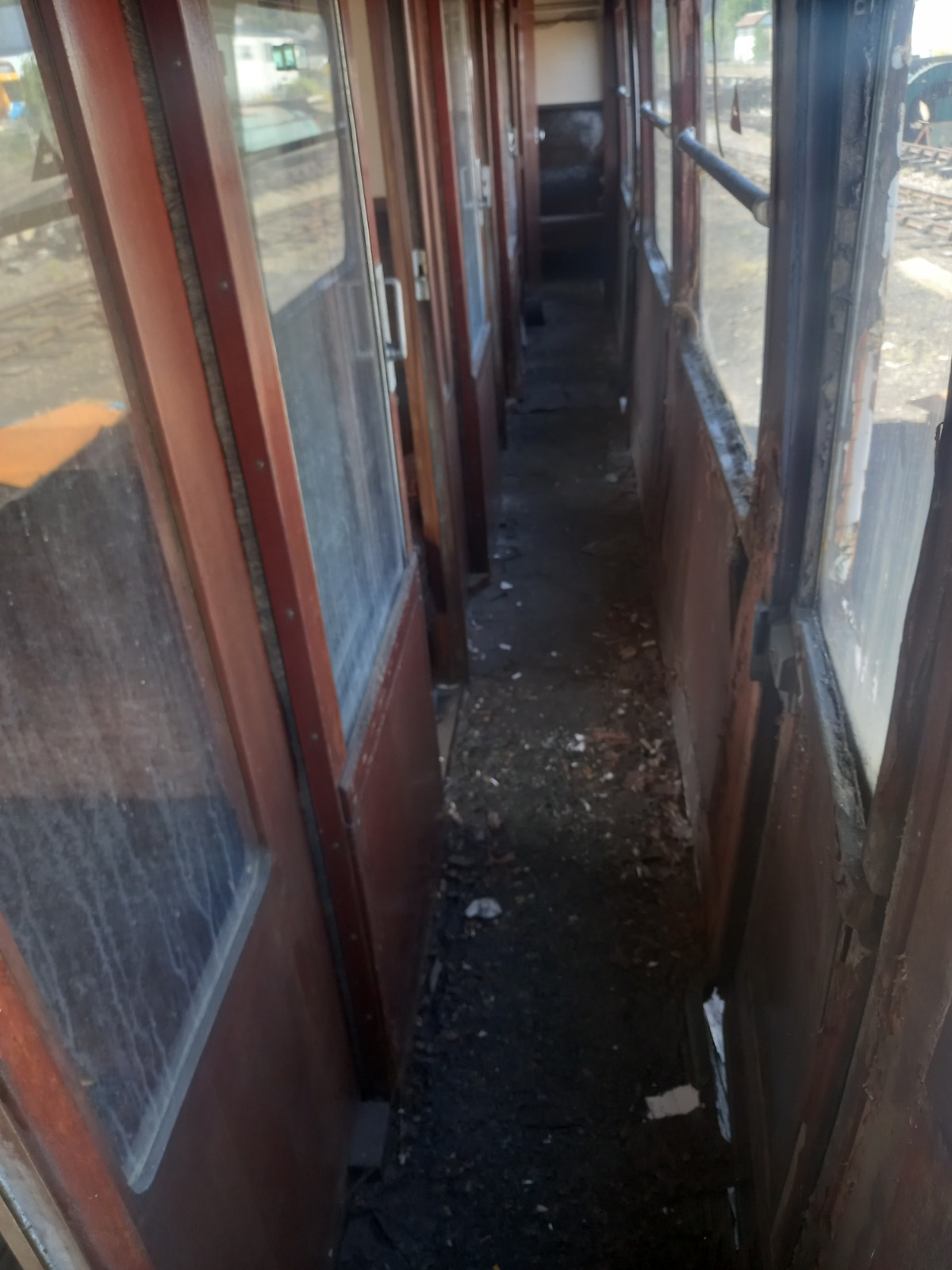 We plan to restore the coach to a serviceable condition so she can run with our BS. The BS is currently in the restoration shed having a new paint job after we completed some minor metalwork repairs. Both coaches will be painted in Rail Blue to portray a suburban set from the 1970s. The coach needs extensive metalwork repairs as well as interior repairs. The coach has unfortunately succumbed to the usual Mark 1 corrosion around the windows and side skirts. The interior woodwork is both sun and water damaged in places, therefore most of it will be removed to be refinished before reinstalling. Some framing and panelling will need to be replaced; however, we will salvage as much as we can to keep the coach as original as possible. The coach will also need to be completely reupholstered as we suspect the moquette is original and is therefore a bit threadbare and faded. New lino will also need to be laid as the existing lino is crumbling.