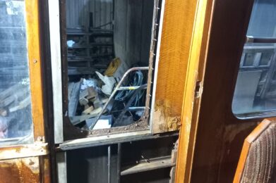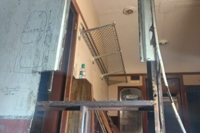 We uncovered her original number under many layers of paint. We know that the Strathspey put her in a crimson and cream livery. After some sanding we found that she has been in Rail Blue, lined maroon, and crimson. Due to the damage to the paintwork, we will have to take the coach back to bare metal for the best results when she is repainted. Hopefully we will find more hidden gems under the many layers of paint.